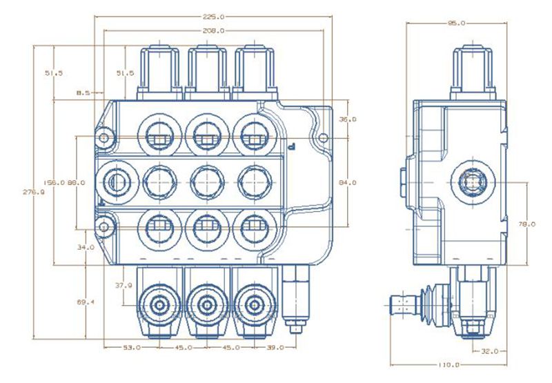 Within the array of six monoblock directional control valve series, the GDV80 emerges with a flow range of 25 to 170 L/min, tailored for comprehensive hydraulic system requirements. This series offers a wide selection of spool options, meticulously designed to control double-acting cylinders, single-acting cylinders, and hydraulic motors. The GDV80's capability to accommodate various hydraulic functions makes it a versatile and essential component for ensuring precise and responsive control in a multitude of applications.